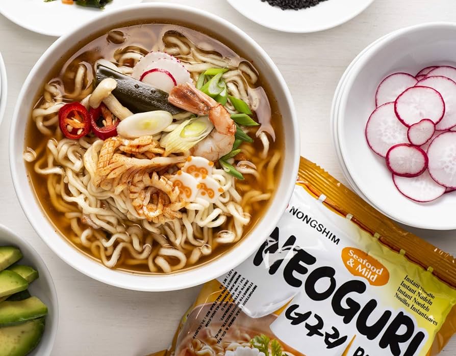 Neoguri is also loved by. many because of its unique thick noodles, which has a more pleasant texture than other noodles on the market. The combination of warm spiciness and rich seafood taste is portrayed from Nongshim’s use of the best ingredients, including kelp collected in waters around Wando in South Jeolla, South Korea.